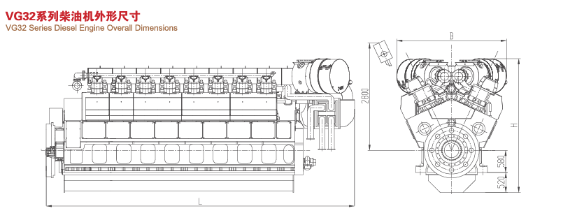 VG32船用柴油機(jī)為四沖程、水冷、直接噴射、廢氣渦輪增壓、中間空氣冷卻、不可逆轉(zhuǎn)的V型柴油機(jī)。繼承G32直列機(jī)低油耗、低排放、低振動、高可靠性等優(yōu)點(diǎn),柴油機(jī)自由端可輸出100%的額定功率,可燃用380厘拖/50町的重油。